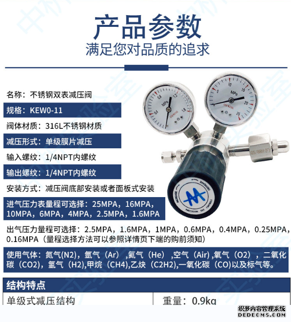 在物理化學(xue)實驗中,經常要用(yong)到氧氣、氮氣、氫氣(qì)、氩氣等📱氣體。這些(xiē)氣體一般都是貯(zhu)存在專用的高壓(ya)☎️氣體鋼瓶😍中。使💋用(yòng)時💘通過減壓閥使(shi)氣體壓力降至實(shi)驗所💛需範圍,再經(jing)過其它控制閥門(men)細調,使氣體輸入(ru)使用💛系統。較常用(yòng)的減壓閥爲氧氣(qi)減壓閥,